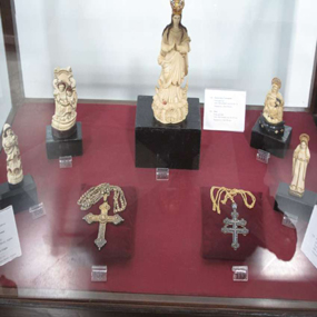 - You can see chalices and salvers made of precious metals, sculptures, paintings, carvings on wood and ivory, crucifixes and other adornments and implements used in the ritual of holy mass.